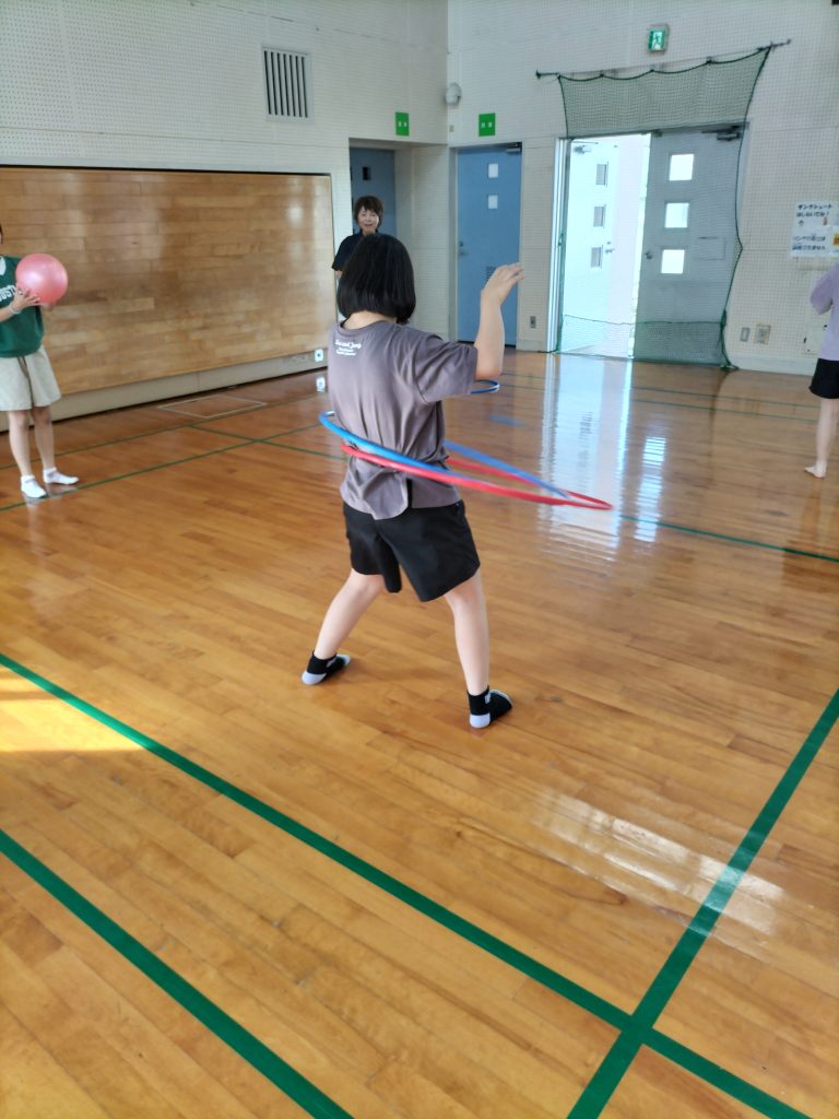 遊戯室では、バドミントンやバスケ、フラフープやぽっくりなどを借りて遊びました!