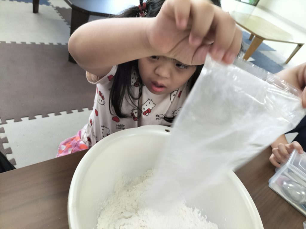 こんにちは☺まはろ伊良波です。 今日は祝日ということで、朝から来所しているお友達とおやつにふわふわパンケーキを作りました✨ みんなでこねこねしておいしいパンケーキができました✨ おやつづくりのあとはしっぽ取りゲームをしました! みんなで楽しみながら体を動かしました。 楽しかったね🎵またやろうね✨ 明日の課題もお楽しみに。