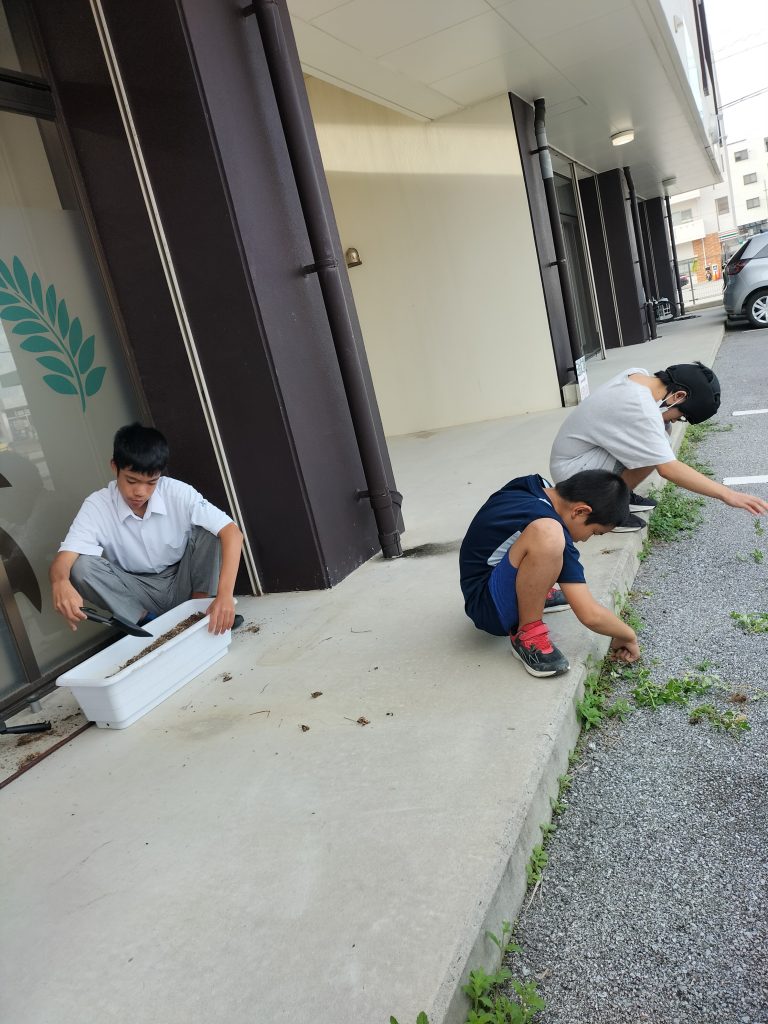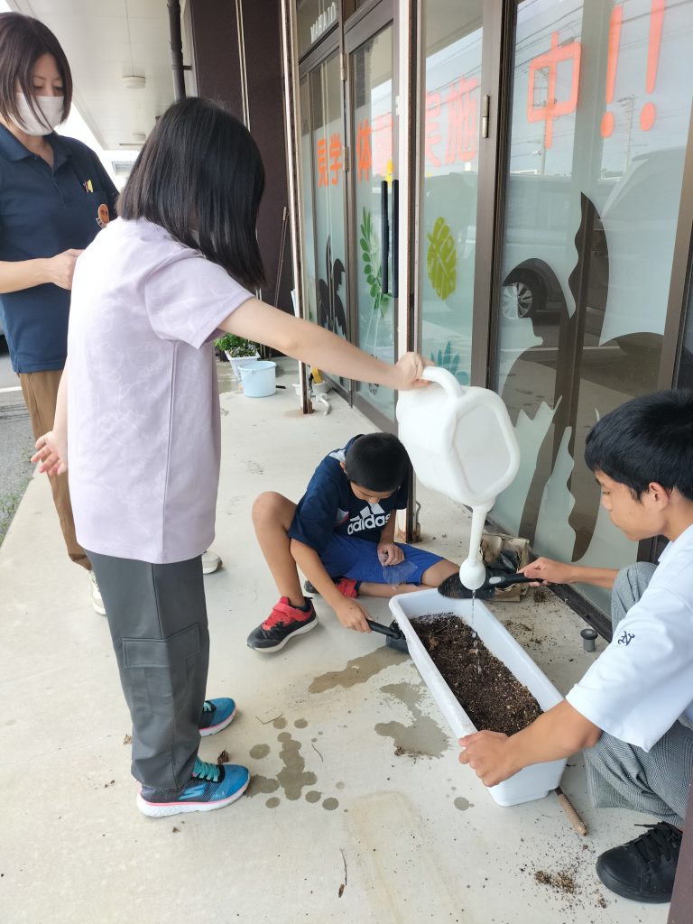 プランターにヒマワリ🌻とホウセンカを植え付けしました。