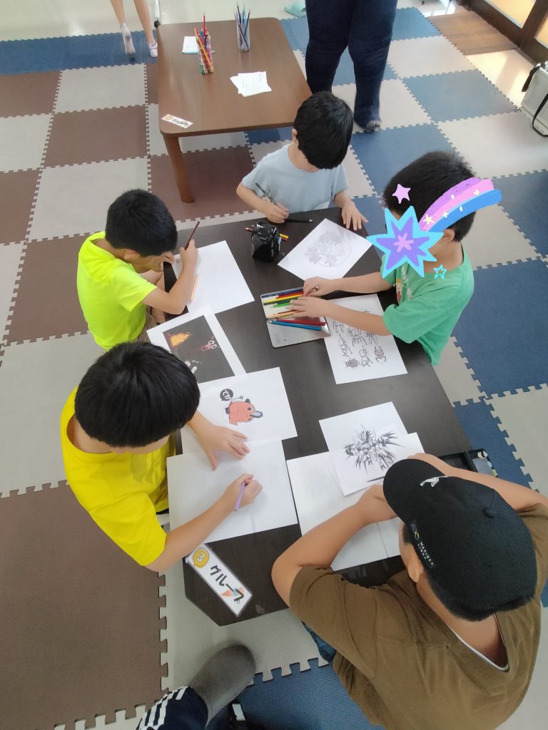 好きな画像を選んで印刷、色塗りまでの工程をお友達と一緒に楽しみました。