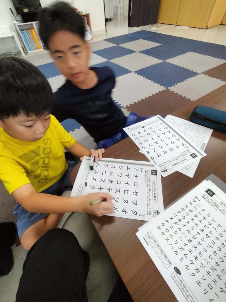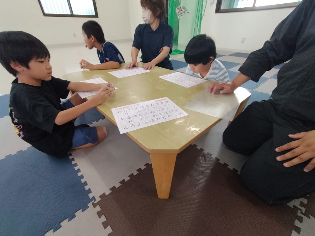 こんにちは。まはろ伊良波です☺ 週末の天気が気になりますね〜🌀 さて今日の課題はビジョントレーニングをしました。 いつも通り、目の体操からはじめます! そのあとはグループに分かれて、プリントをしました。 たくさんの文字の中から、2〜4文字の言葉を見つけることができました👀 集中して取り組むことができていました。 また明日の課題もお楽しみに👋