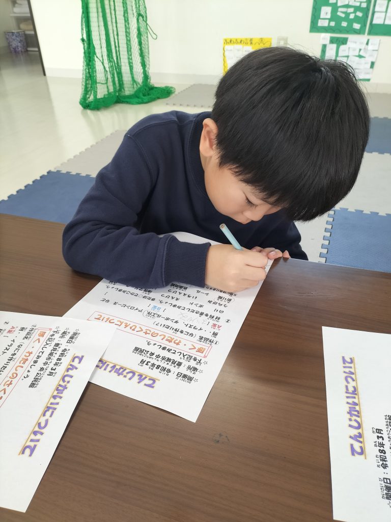 皆様こんにちは! 今日の課題は公園の予定でしたが、悪天候の為、展示会の作品決めに変更しました☺️ それぞれ作りたいものをシートに書いてもらいましたよ! 色々な発想があり、面白いです👍✨ 材料がそろっている児童は、早速作品作りに取り組まれていましたよ! 完成が楽しみですね😍✨ ではでは! また明日の課題もお楽しみに〜👋 【児童デイサービスまはろ伊良波】 豊見城市字伊良波682番地 サウスコート103号 TEL 098-996-2971 FAX 098-996-2972