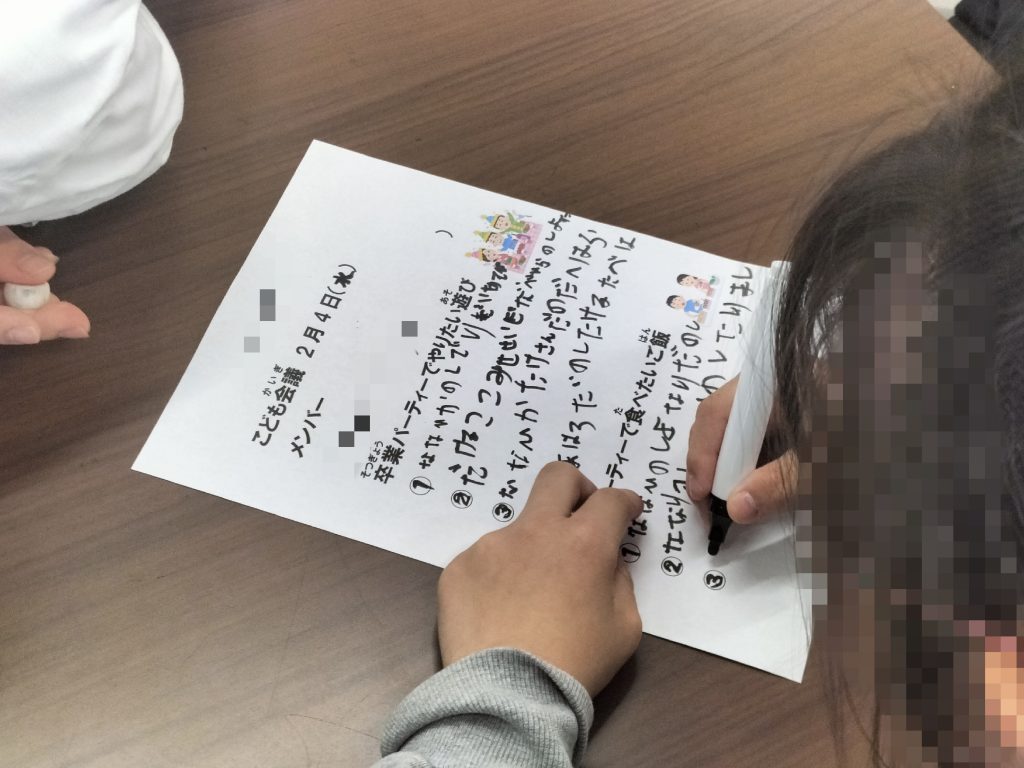今日は3月に行われる卒業パーティーに向けて、子ども会議が行われたみたいです。ちょっと様子を覗いてみましょう👀✨