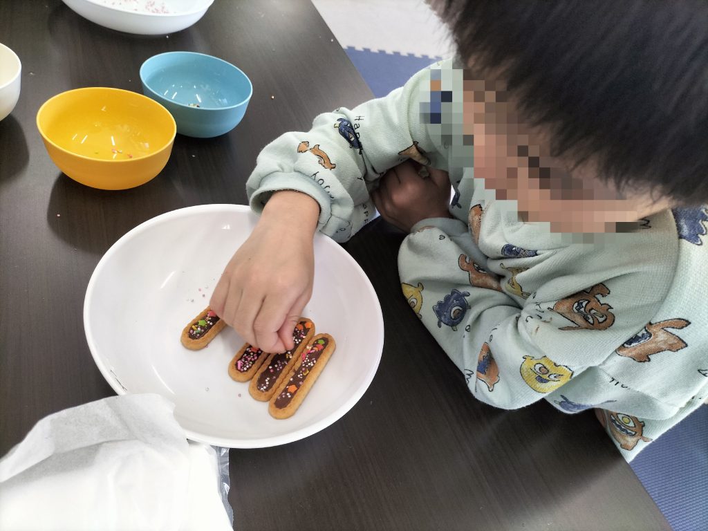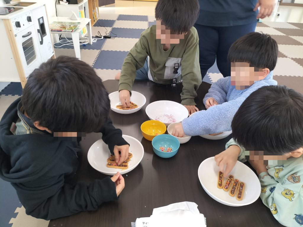 今日はバレンタイン!ということでおやつ作りはチョコのデコレーションを行いましたよ〜✨