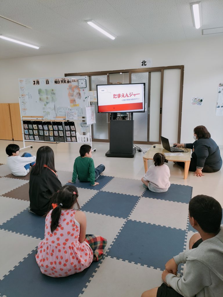 お金の紙芝居をみんなで見ます!