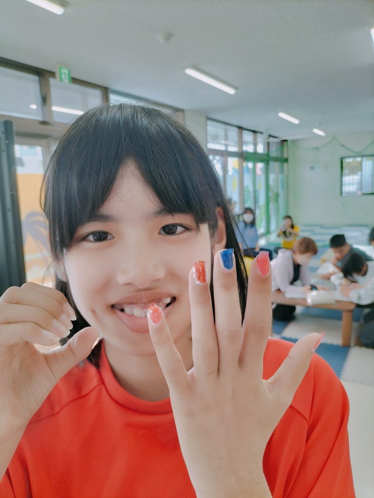 自由時間には、セロテープで作ったネイルシールを貼ったり