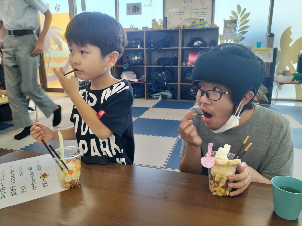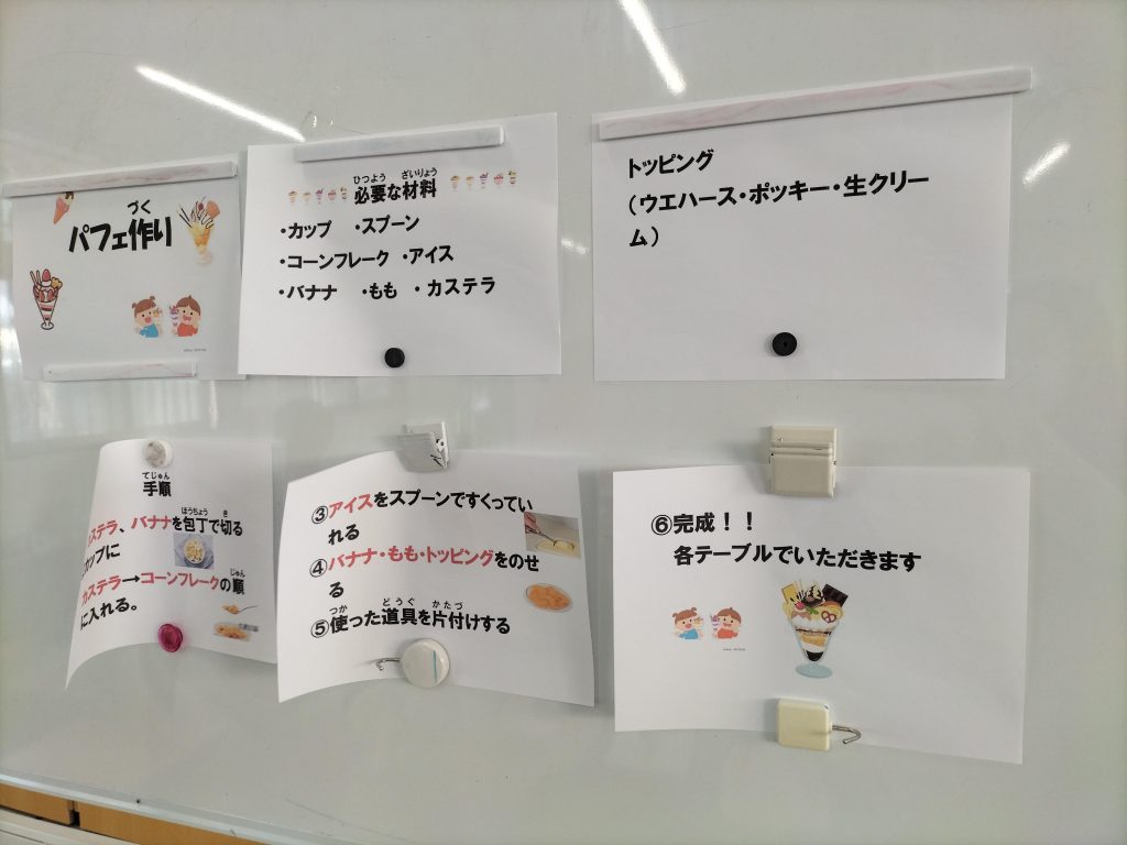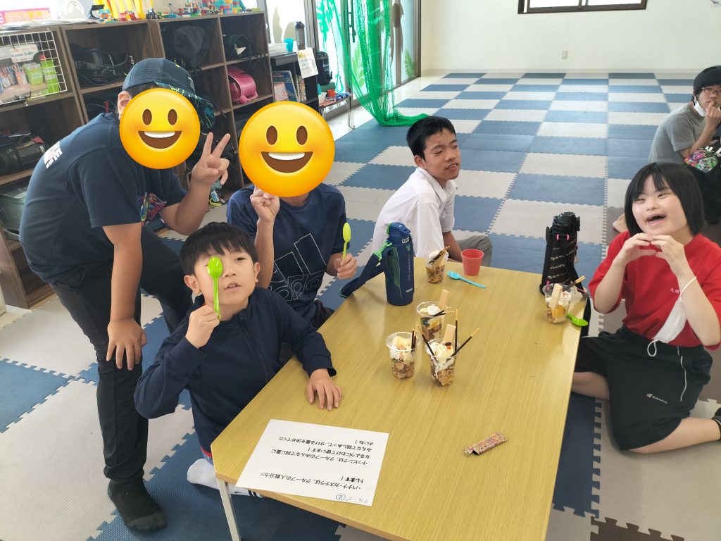 こんにちは☺まはろ伊良波スタッフです! 今日は課題でパフェつくりをしました! まずはスタッフの説明をしっかり聞いて、工程を確認します! グループにわかれて、作りました☺ グループのお友達と協力して美味しく作ることができました💞 また作ろうね、明日の課題もお楽しみに。